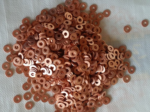 平垫主要是用铁板冲压出来的,形状一般是一个平垫圈,中间有一个孔。这个孔大小规格一般都是根据客户要求来定的。